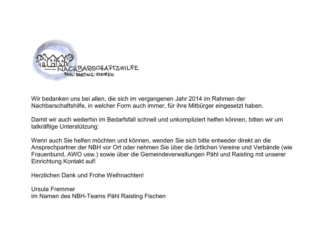Weihnachtspfarrbrief 2014 - Pfarreiengemeinschaft Pähl·Raisting·Fischen